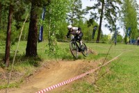 Первую трассу проехал бодро, без ошибок и был доволен собой. Второй спуск начинался с той же точки, но после первого трамплина нужно было повернуть направо на большой трамплин с пролетом около 10 метров. К сожалению, организаторы не стали перекрывать траекторию на развилке и я в пылу борьбы уехал прямо, снова на 1 трассу. Мне дали перезаезд после того, как все участники стартовали, но идеально проехать я уже не смог. На 4-й трассе, в самом ее начале, нас ждал коварный поворот по песку на большом уклоне. Попасть на узкую полку после него было непросто. На тренировках я без проблем проходил этот вираж, но в гонке решил ускориться, и немного погорячился. Вдобавок, полку сильно разбили с моего последнего проезда по ней, и заднее колесо ушло вниз. Потерял секунды 3 и выбыл из борьбы за 1 место. На заключительном спуске сильно рисковал, выбирал самые прямые траектории, и несколько раз был на грани вылета с трассы. Показал хорошее время и в итоге стал вторым в категории Мастера.